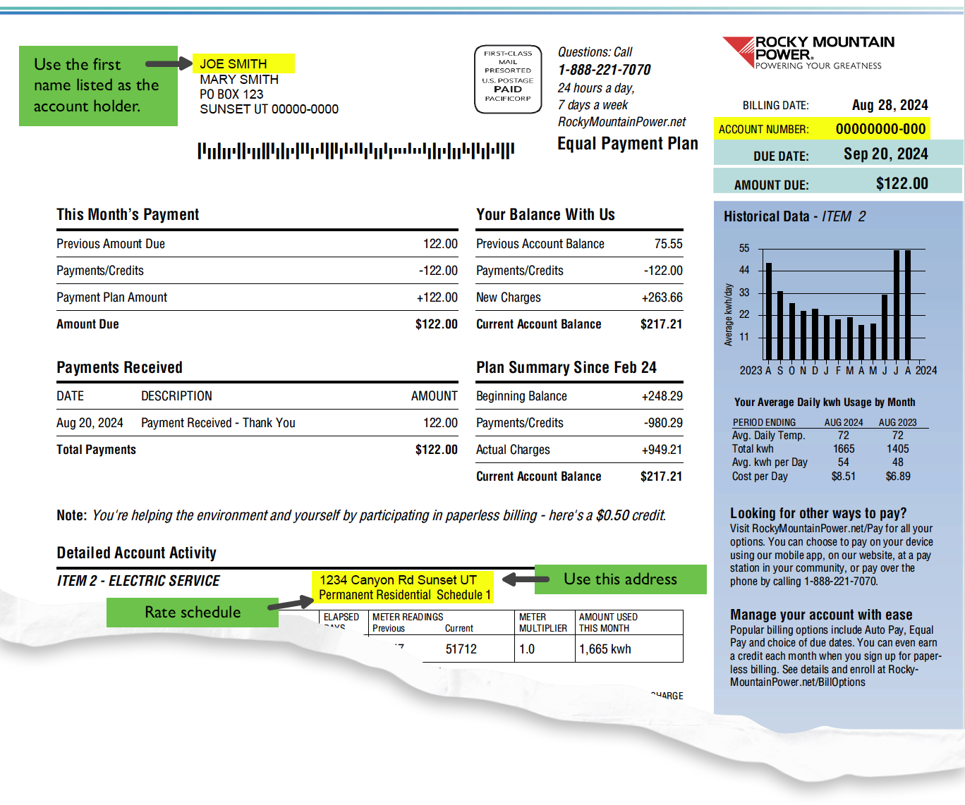 We use your account number to verify the service address and the name on the account. Please note that we must issue the rebate to the account holder for the installation address. In order to qualify for incentives, the address where your item is installed must be served by Rocky Mountain Power on a residential rate schedule.